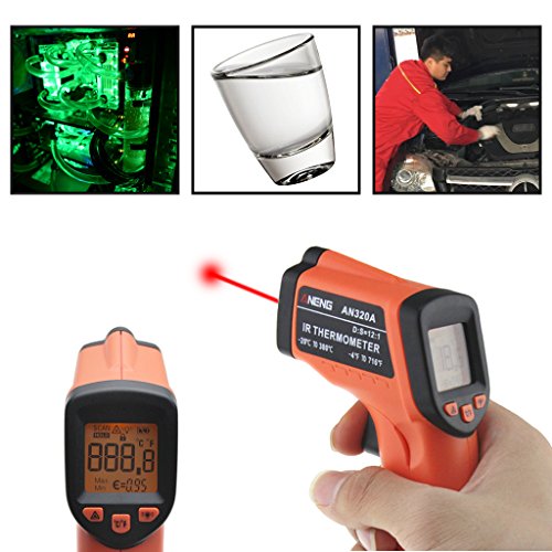 - ۞新しいLCDデジタルIRレーザー温度計赤外線温度計ガンポイント-50°C〜380°C(-58°F〜716°F)非接触温度計。ANENG AN320A赤外線温度計は、非接触物体の表面温度を測定するために安全かつ迅速に使用されます。
