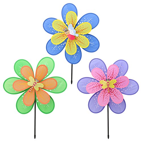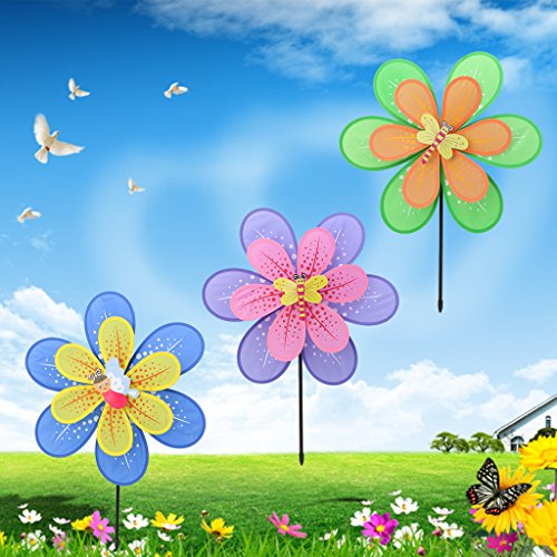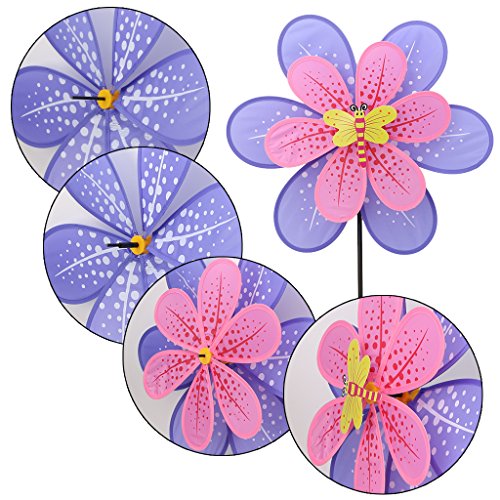 Biuuu ダブルレイヤフラワー風車カラフルな風スピンヤードガーデンの装飾キッズおもちゃ