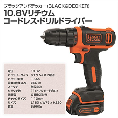 ブラックアンドデッカー(BLACK+DECKER) 10.8Vリチウム コードレス・ドリルドライバー BDCDD12