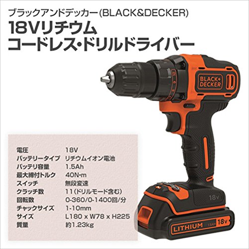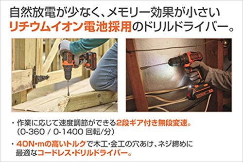 ブラックアンドデッカー(BLACK+DECKER) 18Vリチウム コードレス・ドリルドライバー BDCDD186K
