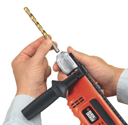 The powerful and compact Black & Decker Hammer Drill is constructed to conveniently handle tough tasks in tight and confined spaces. Features a 0-2800 RPM, 48,000 BPM, 1/2 all metal keyless chuck providing easy bit changes and maximum grip, pistol grip design offers better balance and control, variable speed trigger allows for controlled drilling applications. Drill includes side handle and depth rod. Designed to provide optimal power and speed and ideal for drilling brick or concrete. Measures 1/2.