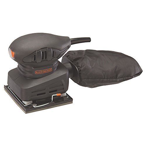 The BLACK+DECKER BDEQS15C 1.5amp 1/4 Sheet Sander is ideal for finish sanding applications such as sanding doors, building furniture, refinishing table tops, and crafts. This corded 1/4 sheet sander comes with a comfort grip handle design. It also features a dust sealed power switch and built-in dust collector which protect internals and extends life of tool . Includes: (1) BDEQS15 Sander, (1) 1/4 Sheet sand paper, (1) Dust bag, (1) Paper punch.