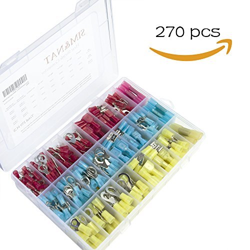270pcs熱収縮ワイヤコネクターキット、Sim & Nat防水電気絶縁クリンプMarine自動車ターミナル