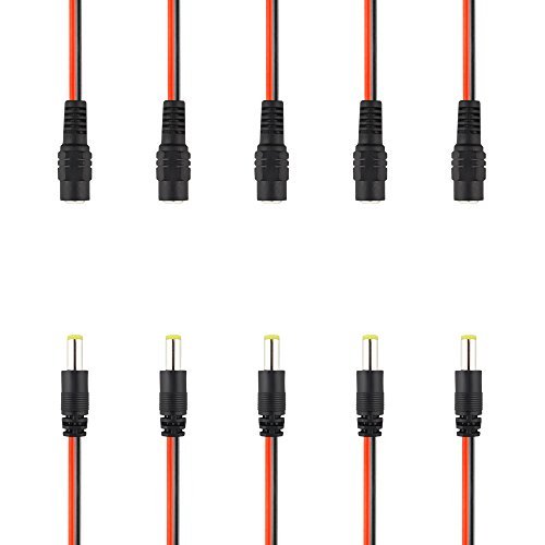 DC電源ケーブルピグテールfor CCTV監視、Sim & Nat 10パックオス&メス2.1 MM x 5.5 MMセキュリティカメラビデオDCバレルジャックワイヤ( 11インチ/ 28 cm )