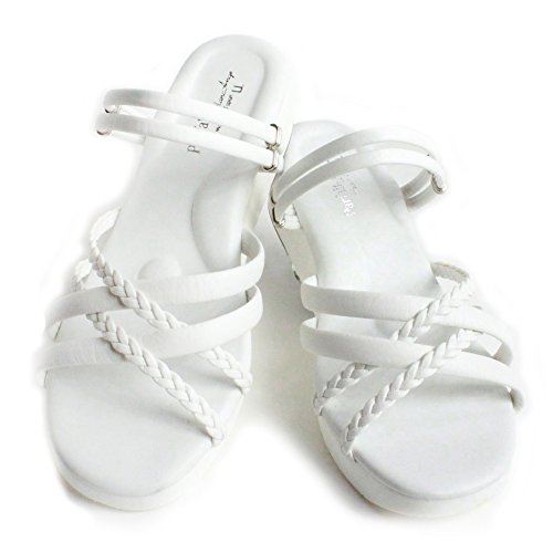 三つ編みマルチ ナースサンダル ホワイト 心地よく疲れにくい2WAYサンダル 白 M(22.5~23.5)