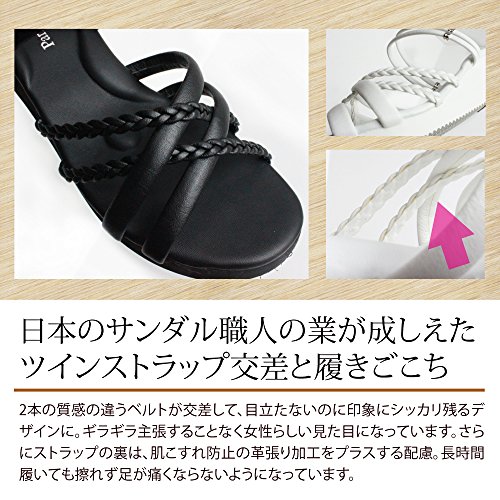 - 日本のサンダル職人の業が成しえたツインストラップ交差と履きごこち!2本の質感の違うベルトが交差して目立たないのに印象にシッカリ残るデザインに。ギラギラ主張することなく女性らしい見た目になっています。