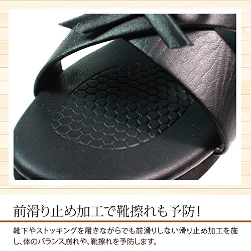 人気のクロスデザインにキュートなリボンがついた機能性ナースサンダルが登場。シルバーのラインがきらめき足元をさりげなく演出します。前すべりしにくいクロスバンド+凹凸加工、足首には日本のサンダル職人が手掛ける細いストラップ仕様で2WAYの利用が可能。足音が少なく履き心地の良い人気のソールで、可愛さと機能性を両立しました。 【素材】●アッパー:合成皮革 ●中敷き:ビニール ●底:EVA ●ヒール高:約48ミリ ●片足重量:約132g/Mサイズ ●ワイズ:3E ●生産国:日本 ●カラー:ブラック ●サイズ:S~LL ※女性用サイズ