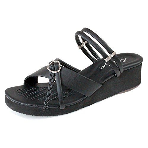 ブランアンジェ ブランハート三つ編み ナースサンダル レディース BA-mituami 黒 M