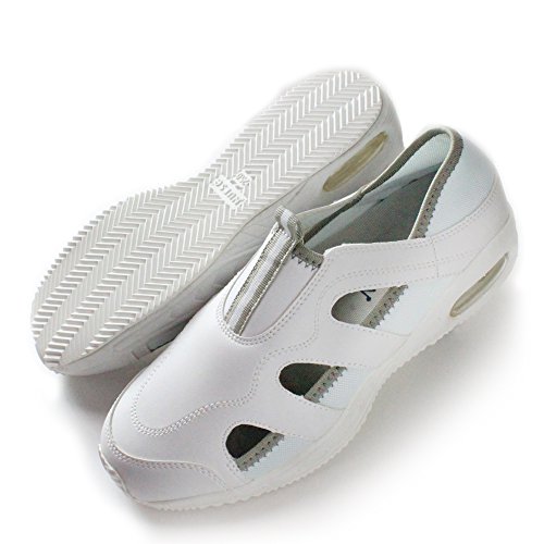 通気性に優れた両サイドスルーデザイン、エアークッション搭載2Wayタイプのナースシューズ。抗菌・防臭加工で臭いもしっかり防ぎます。 【素材】 ●アッパー:PU/メッシュ ●中敷き:BK布+EVA(抗菌・防臭加工) ●ソール:EVA(エアバック搭載)+合成ゴム ●ヒール高:35ミリ ●ワイズ:3E ●片足重量:約190g(24.0センチ) ●サイズ:22.0~28.0 センチ(ホワイト) ※レディス、メンズ(男女兼用サイズ展開)