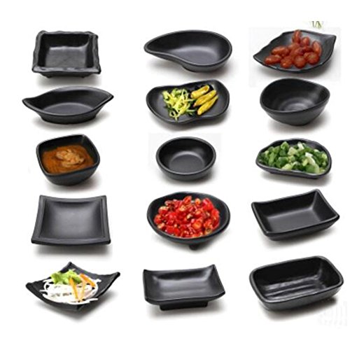 3 PCS和風メラミン茶碗蒸し醤油皿ディップボウルサイドディッシュプレートカナッペプレート黒-A22