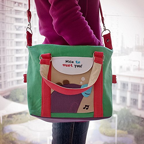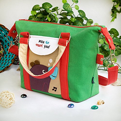 「パープルベアー-グレーン」刺繍アップリケ ダッフル バッグ ショルダー バッグ(24.3*23.6*10.4cm)