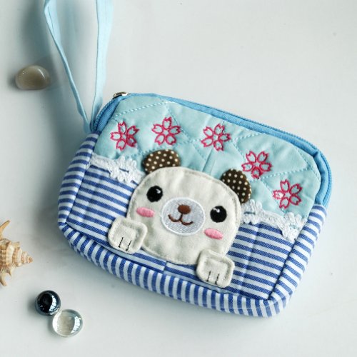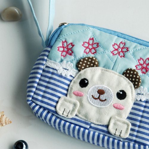 「小さな犬」刺繍アップリケウォレット財布ポーチ(12.9*9.9**2.7cm)