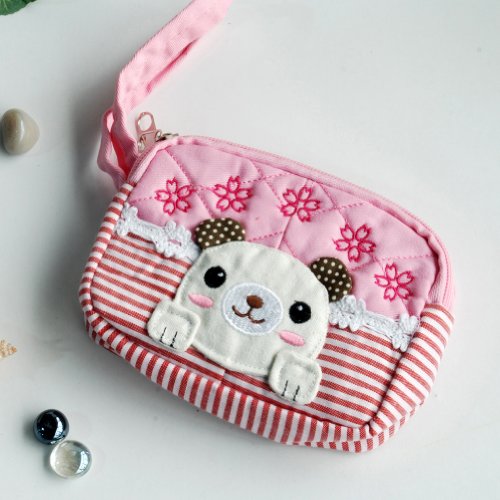 「甘い犬」刺繍アップリケウォレット財布ポーチ(12.9*9.9**2.7cm)