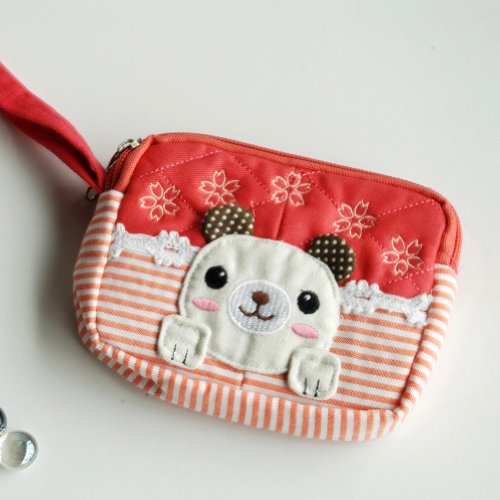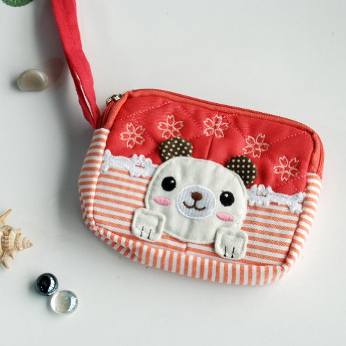 「エネルギッシュ犬」刺繍アップリケウォレット財布ポーチ(12.9*9.9**2.7cm)