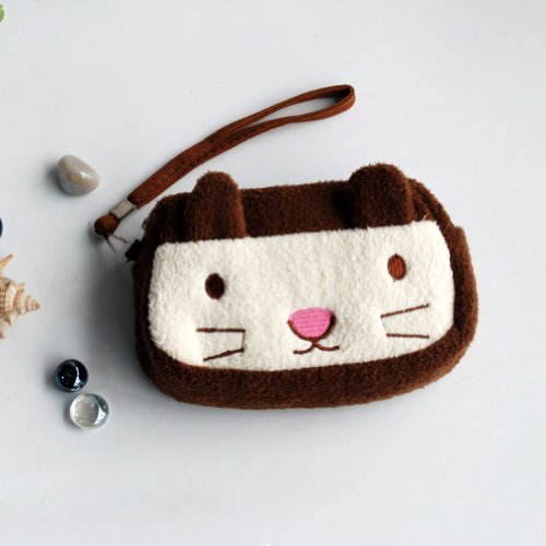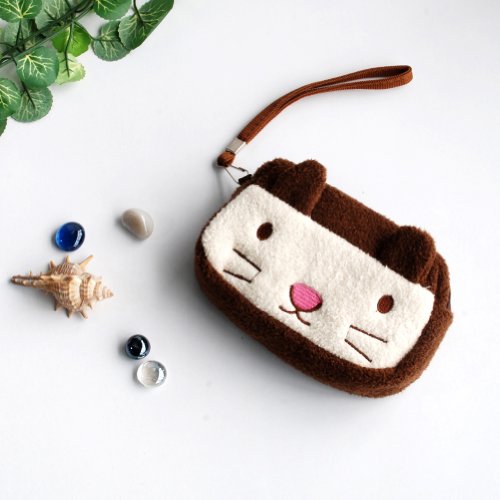 「チョコレートケイト」刺繍アップリケウォレット財布ポーチ(12.9*9.3*3.5cm)