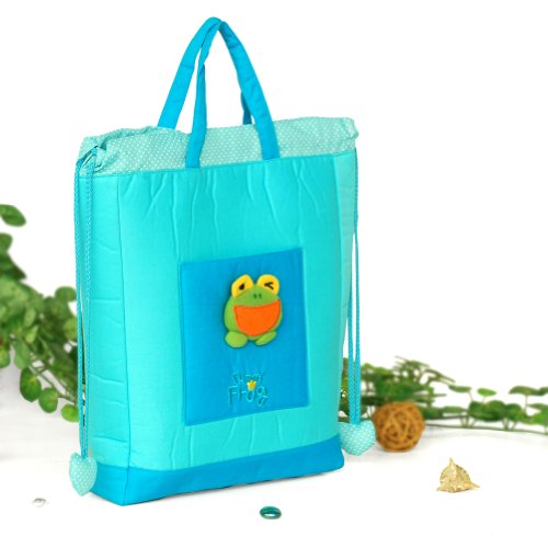 「カエル王子」刺繍アップリケキッズ縄を引く袋(24.9*27.9*7.6cm)