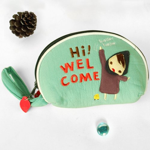 「おかしい女の子」刺繍アップリケ手首の財布コインパース手首パック(14.9*9.9cm)