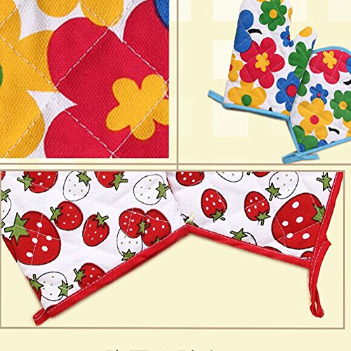 電子レンジ・オーブン専用セット マット キッチングローブ 保護手袋 耐熱手袋 オーブングローブ( 2枚耐熱マット+ 2枚耐熱ミトン) 安全 手作り(花柄)