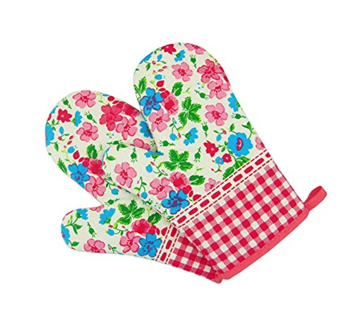 電子レンジ・オーブン専用 キッチングローブ 保護手袋 耐熱手袋 オーブングローブ 耐熱ミトン 安全 綿製 厚手 柔らかい 一対(花柄)