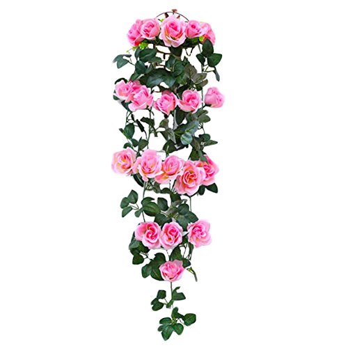 ローズ人工花ロマンチックハンギングフラワーバインバレンタインウェディング家の庭の装飾-ピンク
