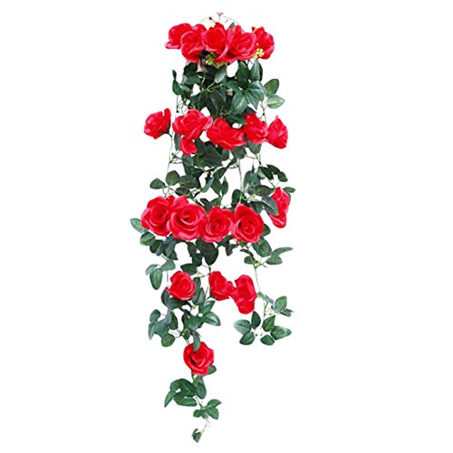 ローズ人工花ロマンチックハンギングフラワーバインバレンタインウェディング家の庭の装飾-赤