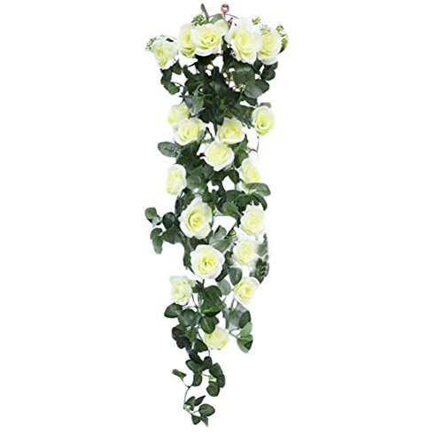 ローズ人工花ロマンチックハンギングフラワーバインバレンタインウェディング家の庭の装飾-乳白色