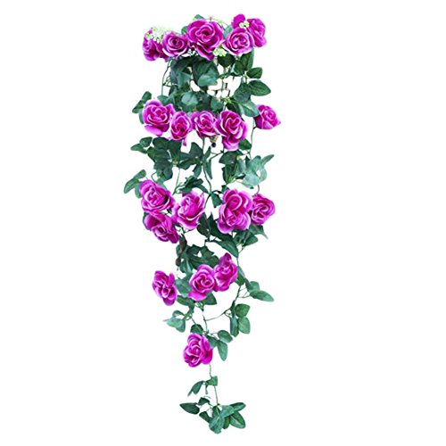 ローズ人工花ロマンチックハンギングフラワーバインバレンタインウェディング家の庭の装飾-紫の