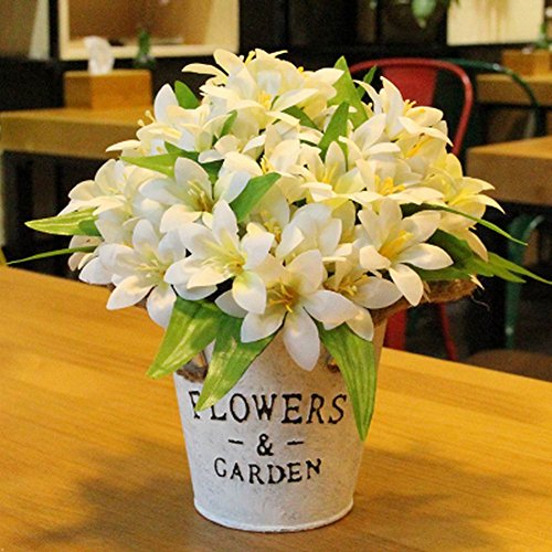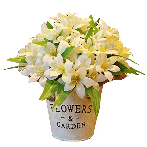 美しい人工花シルクの花バスケットリリーホワイトと偽の花