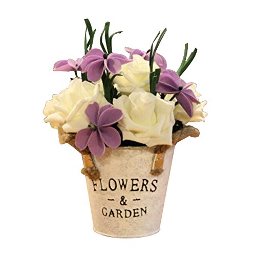 結婚式のための人工花/パーティーテーブル装飾- 白いバラと紫の蝶の花