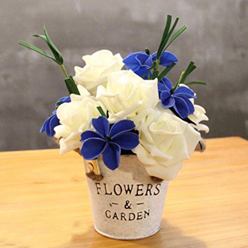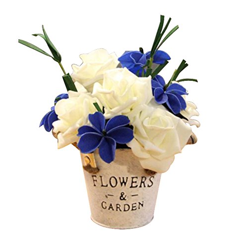 結婚式のための人工花/パーティーテーブル装飾- 白いバラと青い蝶の花