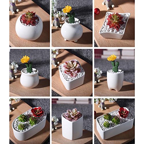 ガーデンデスクミニホワイトセラミックフラワーコンテナポットプランター - D08