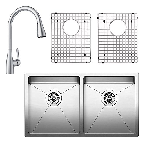 Blanco k519549 – 06 Quatrus 18Xインチステンレススチールキッチンシンクキット仕上げ、サテン