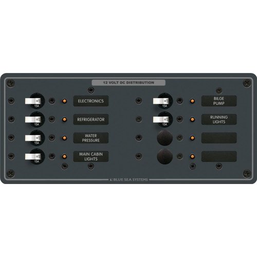 パネルDC 8位置水平に配置されます。(6)15 A単極回路ブレーカー
