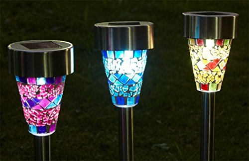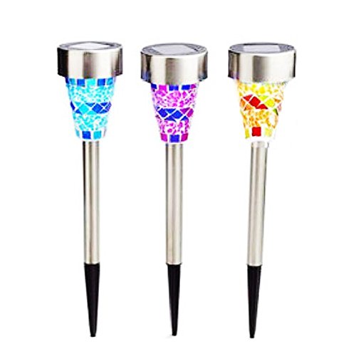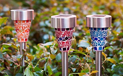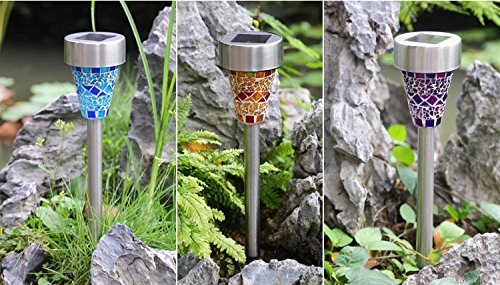 BlueField ステンドグラス風 ガーデンライト LED ソーラー 自動点灯 (3色(オレンジ、ブルー、パープル))