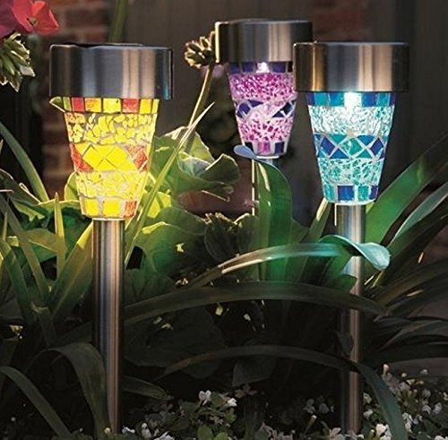 - おしゃれなステンドグラス風太陽充電式ガーデンライト、LEDライトで約8時間点灯