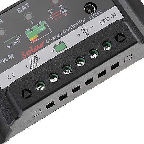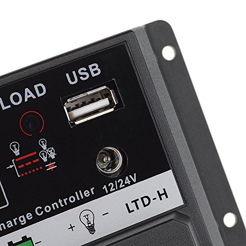 商品説明: この商品はシンプルなソーラーコントローラーで、過充電と過放電から保護します。12V 24Vコントロールシステムに最適です。USB5V/DC12V /24V出力ポートを搭載し、5V/12V/ 24V モバイルデバイスを充電できる。