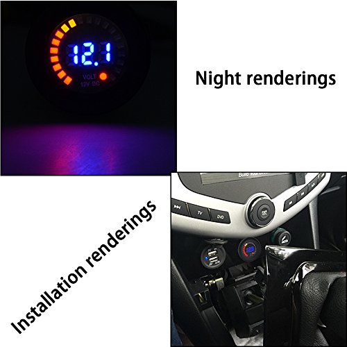 1 xデュアルポートUSB充電器とLEDデジタル表示電圧計