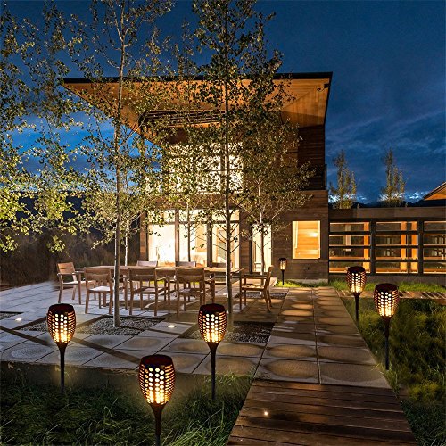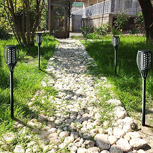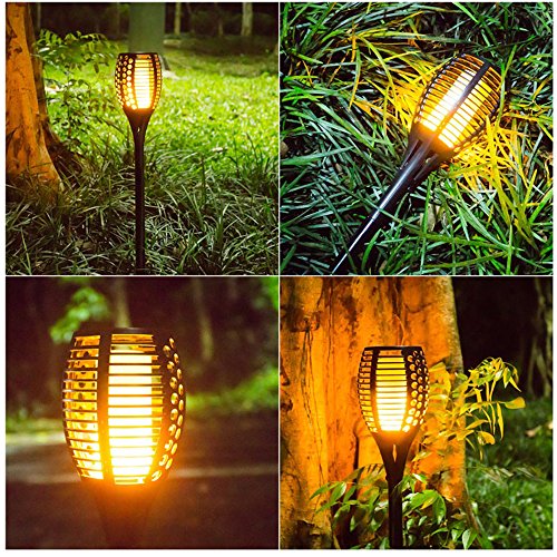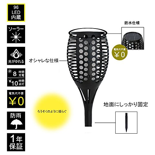 BlueFire ソーラーライト 植え込み96LEDガーデンライト 地中埋込IP65防水 省エネ和風 揺れる炎 明暗センサーライト 電球色 防犯対策 照明装飾 おしゃれアウトドアライト スポットライト 間接照明 自動点灯消灯 庭/車道/歩道/芝生/結婚式/クリスマス/屋外などに対応(1本)