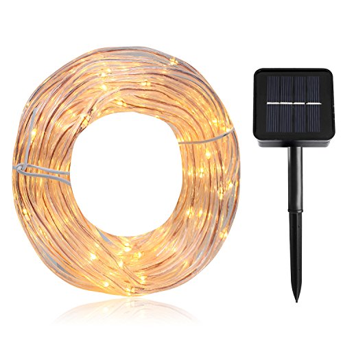 BlueFire ソーラー イルミネーションライト 100LED 12メートル ストリングライト 2モードソーラーライト 屋外 ガーデン飾りライト IP65防水 結婚式/ホームパーティー/お誕生日/クリスマスなどに最適(ウォームホワイト)