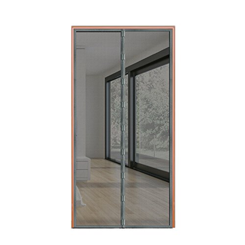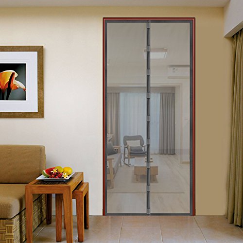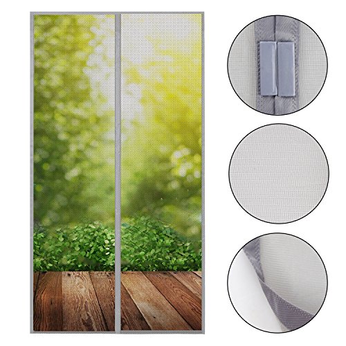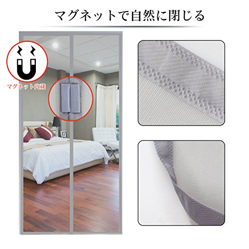 Bluesim 玄関用 網戸 防虫防蚊 網戸カーテン マグネット付き 自動で閉まる ドア用網戸 100cmX210cm グレー