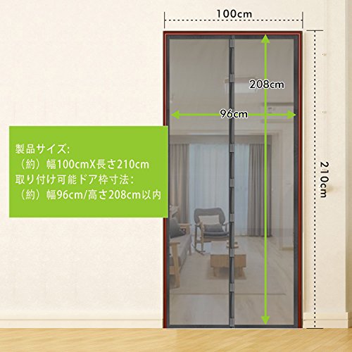 - 取付け簡単!付属の面ファスナーでドアフレームに固定するだけで完了です。ネジや工具などを使った面倒な作業は一切ありません。パッケージ内容: 玄関用網戸(約)幅100cmX長さ210cm 【1枚入り】 マジックテープ上部用100cm*1本 両側用8cm*10本