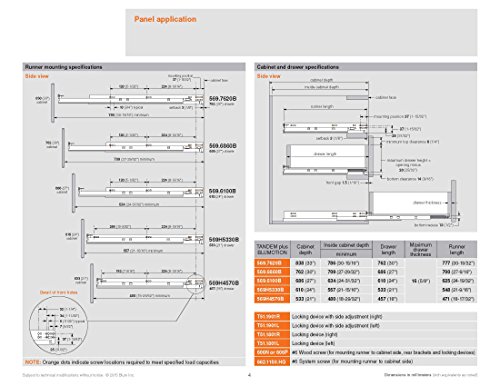 ブラム563h5330b Tandem Plus Blumotion 21 "引き出しランナーペア面のフレーム、シルバー