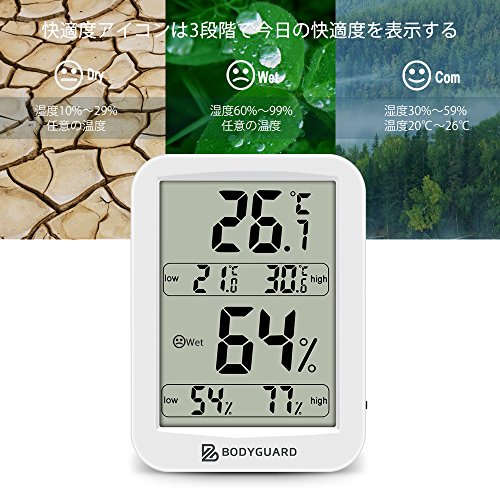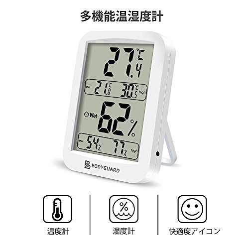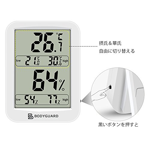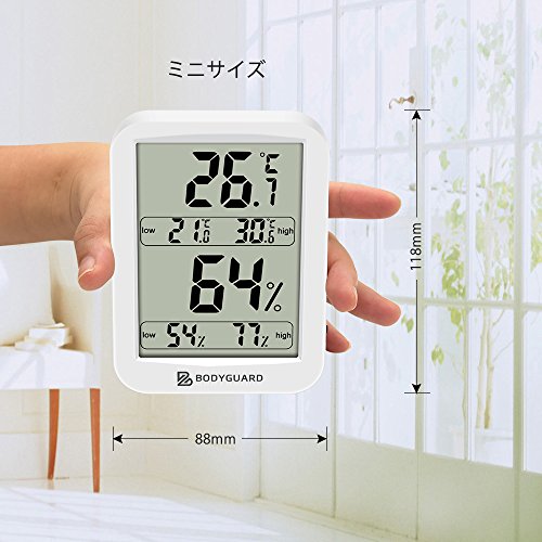 Bodyguard デジタル 温湿度計 室内 最高最低温湿度表示 健康管理 置掛兼用 操作簡単 ホワイト