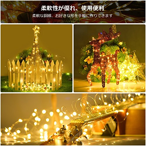 - 【100個電球色LED&10メートル銅線】全体の長さは10メートルであり、100個高品質な電球を持っています。銅線の部分は曲がったり折ったりしても変形と崩壊はしません。好きな形を手軽に作り出来ます。屋外のストリングライトは、星空のような照明効果を提供してくれ、雰囲気も暖かくになります。