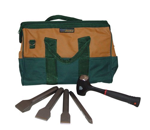 Heavy duty carbide tip chisels allow for longer life. 4 chisels, 1 buck bag and 1 mashing hammer make this a complete set for the stone mason.