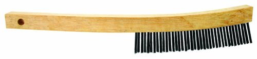 Curved back two row wire brush has a trim of 1 Inch and the row size is 2 x 19. With a hardwood handle, this brush gives you enough leverage to scrub in small areas.