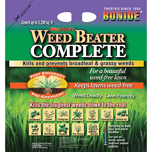 This unique product provides both pre-emergent and post emergent control of both grassy and broadleaf weeds - including nutsedge, goosegrass, ground ivy and others. Systemic action from the leaves down and the roots up inhibits cell division and disrupts photosynthesis. Works equally well on cool and warm season grasses. Weed Beater Complete is a synergistic combination of prodamine and sulfentrazone. Exhibits excellent cool weather performance. 10lbs treats up to 5,200sq ft.