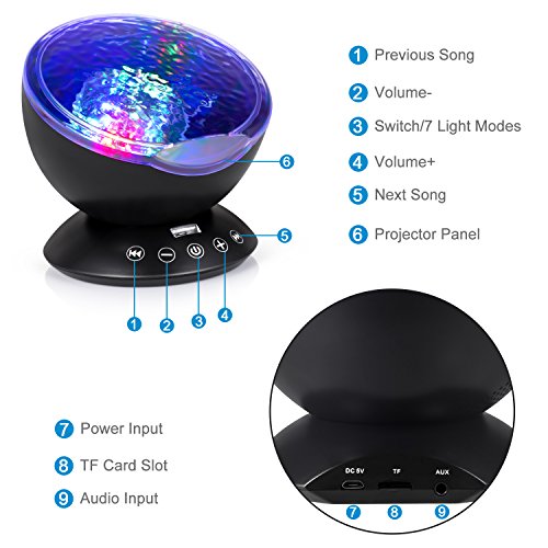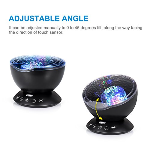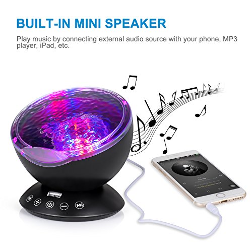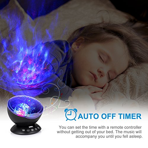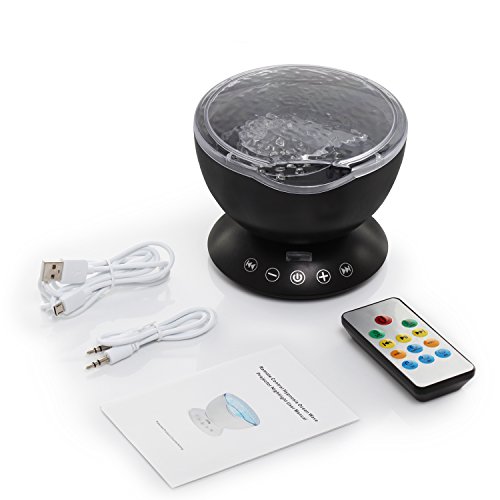 emotionlite Ocean WaveプロジェクタNight Light with組み込みMini Relaxing音楽スピーカーとリモートコントロール12 LED & 7色モードの変更for Kids大人用リビングルームとベッドルーム(ブラック)