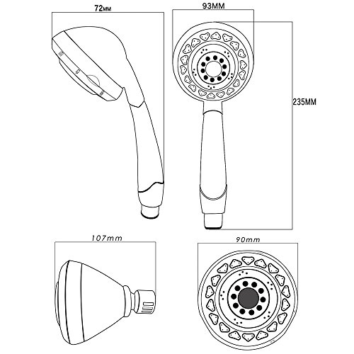- シャワー切替弁コンボ数量: 4-function 3.5インチオーバーヘッドシャワー, 4-function 3.5インチ携帯シャワー; 3方向の角度を調整できる、ハンドヘルドの70インチ長さ。固定されたステンレス製のホース、シャワーholder.テフロンテープと交換してください。
