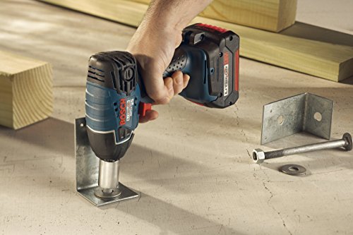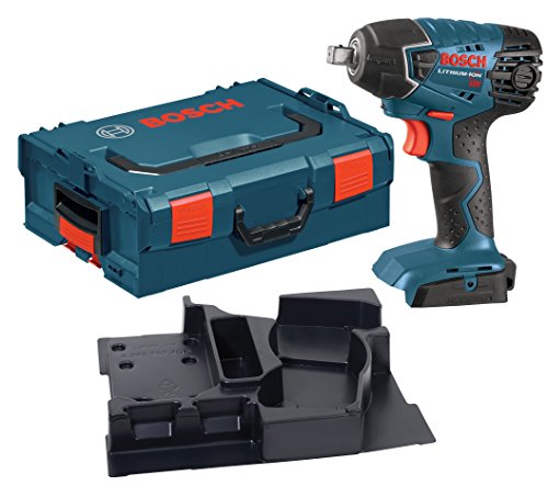 Tool Only (battery not included). This wrench is part of Bosch's new line of Impactor drivers, drills and wrenches. Powered by lithium-ion batteries (sold separately), these tools are up to 27 percent faster than comparable cordless impact drivers and impact wrenches. In the demanding world of metal fastening and serial screw driving applications, the increase in speed means a significant boost to productivity. The Bosch impact wrench packs a punch with 2,800 rpm and 1,600 in./lbs. of torque, as well as 3,200 bpm. A variable speed trigger lets you match the correct speed to the job. As user-friendly as it is powerful, the wrench makes it easy to work with a variety of materials. An LED light illuminates low-light areas for improved visibility and a gearbox cover provides additional protection against dust and debris. To keep you working comfortably, even during all-day jobs, the wrench features a newly designed handle grip. It offers extended comfort, control and balance so you can work quickly and with precision. Measuring 6 inches and weighing 3.8 pounds, the impact wrench is one of the most compact on the market. The Bosch 24618BL includes (1) Bosch Bare-Tool 24618BL 18-Volt Lithium-Ion 1/2-Inch Square Drive Impact Wrench and (1) LBOXX-2 carrying case with an Exact-Fit Tool Insert Tray, which are part of a stackable storage system designed to improve tool organization and transportation on the jobsite. One of four different cases, the LBOXX-2 is ideal for storing 18-volt cordless drill/drivers and compact system tools, with room for accessories. The innovative click system allows for easy connection and disconnection of any number of L-BOXX's. With the ease of single-click stacking, each L-BOXX easily locks together for easy transport and handling.